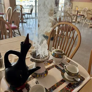 Just tried Gursha for the first time while visiting Vegas. We were craving Ethiopian and wanted something off Strip. The ambiance was calming upon entry, and we just relaxed and took our time eating. The food was delicious, and came with plenty of injera! We ordered sambusas, the veggie platter for 2, and the kitfo (add the berbere!). The owner was incredibly welcoming and friendly. She was our server and was cooking too, and we could feel the love she put into everything. We finished off our meal with the Ethiopian coffee ceremony, served to us by the owner with incense burning, a perfect way to end our meal at Gursha. Highly recommend!