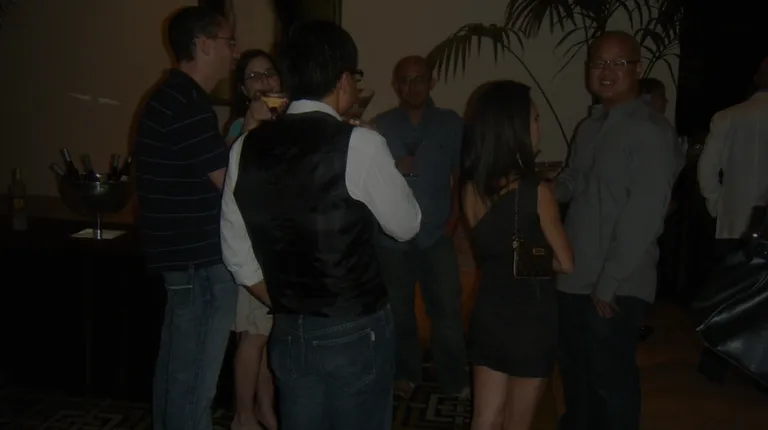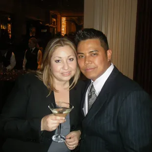 A free event with yelpers, wine, food, and a swanky setting is like a gift!My main goal was to celebrate turning in the first half of my comprehensive exam that day, and then to relax. The absolute best part of the event was hanging out with various awesome yelpers and their guests, admiring Nelson Q.'s youthfulness, and meeting Donald Ziraldo. Considering all of these people were here to admire him and his wine, he gave me a few minutes of banter (he was recruited to play NCAA football from Canada, and got drafted to the CFL) and gave me his card to visit the winery when I am in the Buffalo/Niagara area next year.I am not partial to sweet wines, but try to be open-minded. The cocktail (icewine/vodka) was waaaaay too strong for me, so poor Paolo D. got a bit drunk at my expense. Then, the vidal and riesling varietals - I actually liked both flavors. The crab cakes were lukewarm but very generous with crab (and lobster I believe), and the duck spring rolls so-so. The waitress told me they were vegetarian when I asked, but they had meat so I spit it out thinking it was pork and then found out they were duck so I ate one later. Oy. After that, standing around in plats and all, Eric R. and I were hungry so we bid ado to our yelp friends and went off to Grind Burger.It was neat to visit the Trump for the first time and hear about Equifera's partnership with Kruger to bring icewine to Vegas.