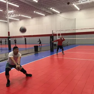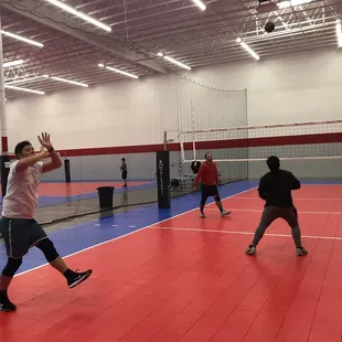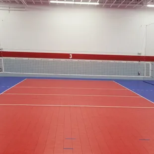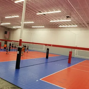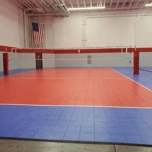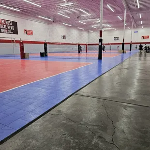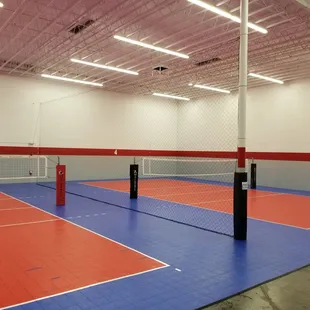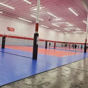 Great facility. It is a warehouse turned into a four volleyball courts. Very clean and spacious. The equipment is very good and well taken care of. The staff is friendly and helpful. They have tall nets separating each court.