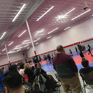 I came here 3 times for open gym. It cost $5 and the times vary throughout the year. The 8pm-10pm has more of an older crowd. The 2pm-5pm has a younger (10yo-15yo) crowd. I only sat for a maximum of 5 minutes on the 8pm-10pm. The 2 pm to 5 pm I sat for like 1 1/2 hours out of the 3 so I would go at night. The facility itself is very nice and easy to maneuver. The floor is good and your feet don't really slip. There is a little store that sales clothes, snacks, and drinks. The owners are nice, and the crowd is pretty cool most days. I would try to go with a team if possible because there is no guarantee that another team will pick you up. They have 2 gender-neutral restrooms, but no locker rooms. The parking lot has a lot of parking and the location is easy to find. It is close to the airport. Ball up kids!