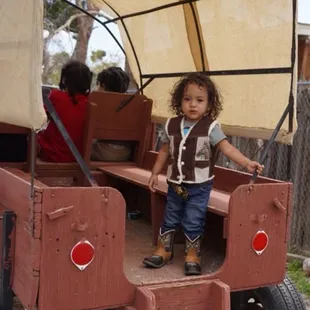 Cool place. Today was the second birthday party we attended in this place and the kids had a blast. Pony rides, petting zoo, monkey bar/small playground area and awesome ranch vibes. Like it a lot, like the fact it stands out from the crowd in vegas' kids activities places. Points of improvement: 1. Add a larger entrance sign! 2. Food could have came out quicker. They kept waiting for the last kid to ride the pony but it lasted forever and everyone were hungry. Other than that, super nice! Not for cold or windy days though.