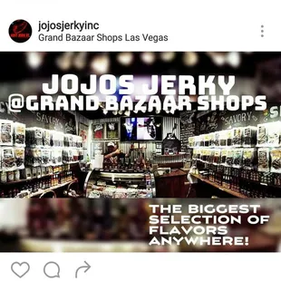 I was already a fan of JoJo's Jerky before walking into this store for the first time. About a year ago, the BF went to the location on the strip and brought back the vegan cactus jerky. So I couldn't resist walking into the store at Downtown Container Park while hanging out in the Freemont area.I'm not gonna lie, what first drew me in was this innuendo-y sign: http://bit.ly/2mFvZ8pThis store is super small but I was excited to see cactus jerky flavors that I haven't had yet. The super friendly and helpful employee was nice enough to offer samples so I could make a confident decision. Not necessarily in jerky form but she offered it in sauce form which is pretty much the same seasoning/marinade the jerky is made with.Upon purchase, I noticed another funny innuendo-y sign: http://bit.ly/2myZgCuSorry if you're offended. I love a good immature pun ;PI've had all five flavors of the cactus jerky. My favorite is Cactus Joe's Pepper Jerky. The spicy ones, Sweet Heat and Triple Threat are good too but WOO they're spicy!!! http://bit.ly/2liCZHkJojo's isn't just jerky. They also have these: http://bit.ly/2m10Orf
