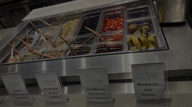 The aesthetic of this JuiceFarm location is colorful, clean and inviting... It's located right at the entrance to the Casino / Spa Level floor as you walk into the Red Rock Hotel from the parking garage.They are open from 7am - 7pm, and offer juices, protein smoothies, wellness shots, cold brewed coffee, acai / pitaya bowls, overnight oats, and some other healthy snacks. During our recent stay, I stopped by for a Zinger Juice (Apple * Lemon * Ginger), which can be found in the grab and go section. I also ordered a Smoothie for my daughter. I went with a blueberry option but subbed strawberries. She took one sip and wasn't a fan, so I drank that too!Service is a bit slow, so if you choose to go here, give yourself plenty of time. I hear from others that the quality of the drinks is not super consistent either. The prices are on the high end, but it's convenient and healthy and a nice alternative to Starbucks.They also have locations at the Palazzo and the Venetian.