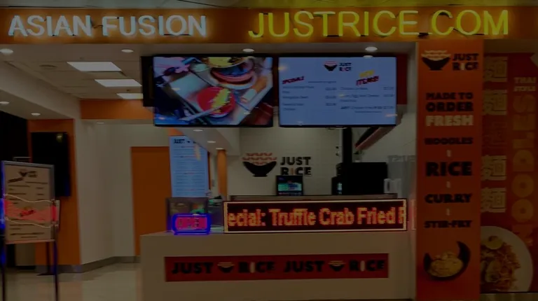 Just Rice was in Freemont StreetWe shortlisted this based on the reviews The reviews were 4.9 like extremely high so decided to try it out Later discovered this was in a food court But the ratings were super high The ambience was average as in a food court The service was excellent as the woman at the counter was very warm and helpful The food was way beyond expectations Excellent is an understatement it was above and beyond We ordered Shrimp in masaman curry which came with rice It is the best I ve ever eaten Then we ordered a truffle crab fried rice which was good tooOverall an awesome experience Would definitely recommend it this place for ppl who visit Vegas This is a must visit in my list