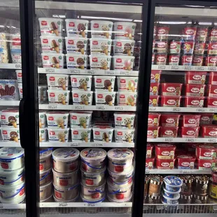 a shelf full of milk and other beverages