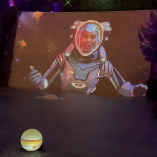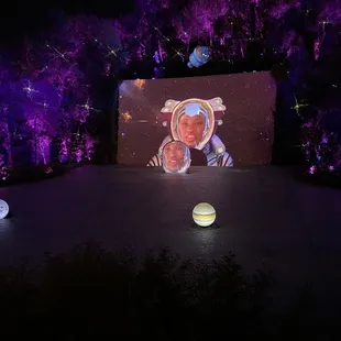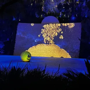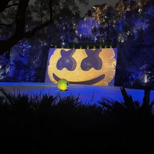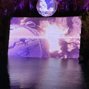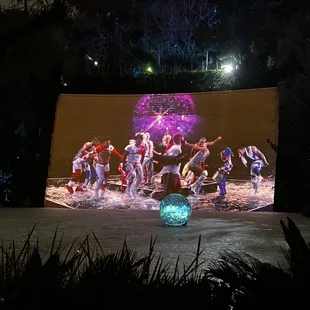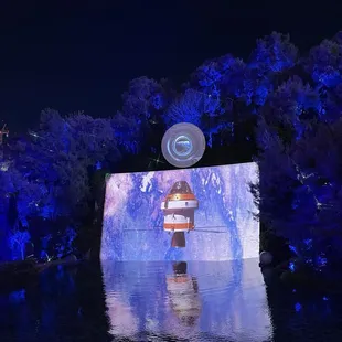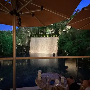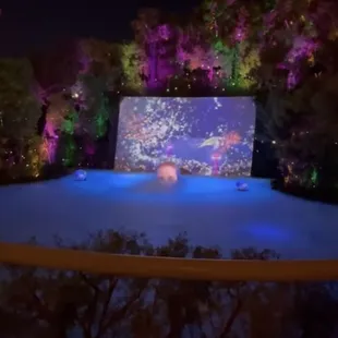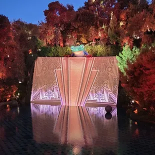 This is a free show that starts at dusk (8:30 PM when we were there) and replays every 30 minutes. We hung out on the second floor balcony, grabbed cold drinks from the bar, and lounged around til the show started. An animatronic frog sang a song for about 3 minutes over a pretty waterfall and lake. It's underwhelming, so I don't recommend spending too much time waiting for this, unless you just happen to already be there.