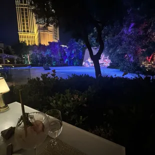 I always come sit out here when I want to relax for a while. You have to wait for the sun to set. If you want to see the quick shows that come out every half hour there is a full bar on the patio as well, which is nice.