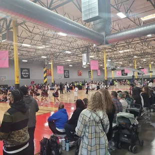My niece's son had a tournament here , and since they were in town, I opted to support with screams and clapping my flippers. I was impressed by the size of this place and the numerous courts they have for multiple games. On top of that, they sell snacks, T- shirts, and SHOES! Whaaaaaat? Great for emergencies I suppose. There are bleachers and bullt in tiered benches along the wall, so plenty of seating. Anywhos, nice massive setups in this place, ample parking, and great location.