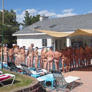 The Las Vegas Naturist Club is the only landed AANR nudist club in all of Las Vegas.The grounds are beautiful on this large private estate near the western edge of Las Vegas away from the strip and traffic just below Lone Mountain.The club is not clothing optional so all must be nude. The owner is great and the club caters to local M/F nudist couples with a limited number of solo male members.On Saturdays from spring till fall the north end of the 70 foot soft salt water pool is always filled with couples playing nude water volley ball, lounging in the conversation pool or driving off the board in the 9 foot deep end.Beautiful murals painted by an artist member cover the outside walls of the estate and barn perfect for nude photo shoots, there is a viewing platform area great for viewing the distant Las Vegas Strip and fireworks on holidays in the buff.Like the owner and host the members are warm and friendly at this non sexual drama free nudist club.I've been enjoying this wonderful club and best adult nude water volleyball in all of Las Vegas for the last thirteen years and hope you will to.Life's a beach.