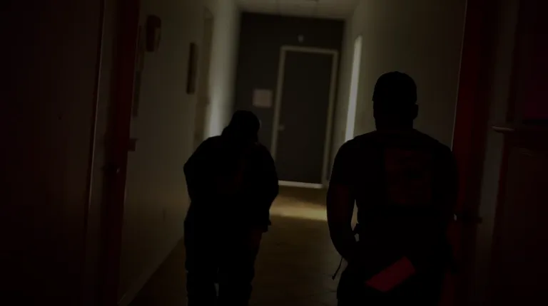 Interactive spy mission with live actors guarding the hallways, using laser guns to protect the area.