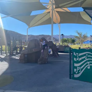We will make the drive to come here. I mean, any park surrounding Lone Mountain is my favorite. I really love this area. I love the view, the cleanliness, the openness, and elevation. It is a park which offers a bit of everything for everyone. You can picnic beneath a gazebo or on the grass, and did I mention the view?! Lol. The only thing I would complain about is the lighting at the playground, and that the playground itself can get a little boring in comparison to the other playground equipment nearby. There are NO SWINGS. As a parent to 4 boys, they dont notice or care. Though, i have met many parents who do. But I mean still...it does it's job. Basketball courts are nearby so in this household, it satisfies everyone's desire. There are two bathrooms one by the playground and one by the basketball courts. If there are parties/bbqs happening, parking can be pretty scarce. However, it isn't something to instill fear or to be deterred. Lol. Enjoy!