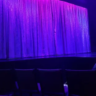 Stage, pretty funny show. 20volunteers, 5-6 most hypnotized stay on stage. Great value would do again.