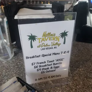Best breakfast menu around. Outstanding! The price is right and the sizes plenty too. Love the wait staff and chefs, and it has slots. Get your Miller's Tavern card for great meal discounts. It's the highlight of my Sun City visit.