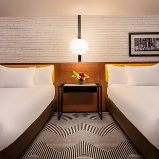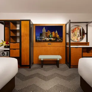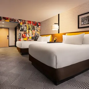 Queen beds with lots of room to move around. Didn't feel tight at all like some Vegas hotels