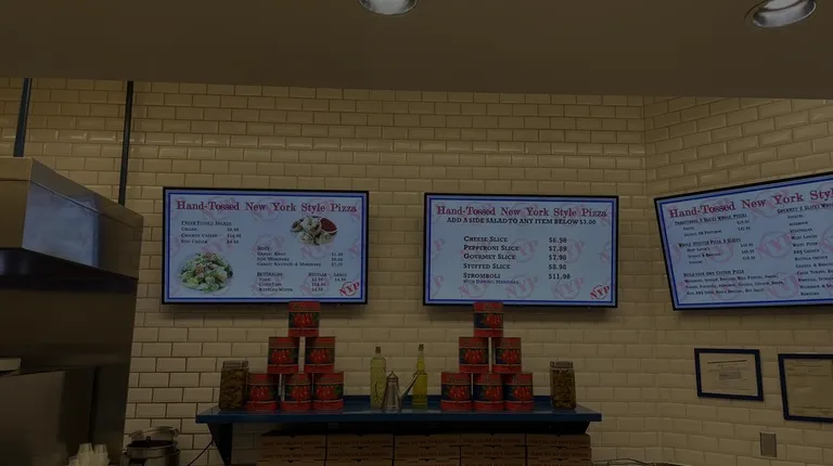 The pizzeria inside the New York Hotel on the Vegas strip is a convenient spot for a post-night-out meal, staying open late to accommodate your late-night cravings. Just a heads up that this spot is a bit pricy, where 2 slices and 2 garlic rolls were over $20. The pizza, also, isn't true New York style due to its thicker crust. Some letdowns were that the pizza was VERY greasy, had a hard crust, and minimal meat toppings, with only about three small pepperonis per slice, but it wasn't the worst pizza overall. Despite these drawbacks, the convenience and late hours make it an ok choice for a quick bite after a night out.