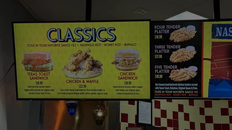 If your looking for a great in-between drinking snack and don't want to worry about full service this may be a great option. Don't get me wrong your food won't run too cheap but for all that you get its decent. I opted for Nashville hot however there was not even a hint of spice. Flavorful, hot, fresh and saucy but it's was as spicy as a bellpepper. Once I received my food I honestly was surprised for what all came in the price. A small coleslaw complimented the tenders and added a refreshing taste in each bite. Texas toast on the side to dip along in the excess sauce and the most delicious fries all under about $20 per person can't be beat. My food busted with flavor and was fingerlicking good. I do wish they had spicier sauce options but then again I'm one of many who prefer Caroline reapers and scorpion peppers over the mild taste of ghost peppers . For some the sauce may taste a bit peppery but that is why I included my spice level so not to confuse any of my readers. My overall experience is the food would get a 9/10 however customer service although not personable? She was very quick and honest about what was good .