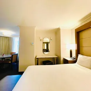 I stayed here for 1 night on a Thursday for some business down the street. I had been through the Palace Station, but have never stayed here until now. I was very pleasantly surprised. They have done a lot of remodeling here over the years. My understanding is that they tore down the section of the property that included the room where O.J. Simpson ran into his criminal problems in 2008. The room was very affordable, but I went ahead and upgraded to a better view (I think it was called the "tower view"). It about doubled the price, but for one night it was worth it. The room was in good shape and the bed was comfy. It was a very nice stay.The casino floor is larger than it looks. There are several restaurants and bars to hang out it in. The Oyster Bar is always popular, but I've never had the time to wait in the long line (maybe someday). My understanding is that the Oyster Bar is open 24/7 :OI will definitely stay here again if given the chance.