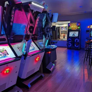 Great place for rhythm game fans. Multiple DDR and pump it up machines. In the groove with custom packs. A full rock band style room. Beat saber vr. And around 2 dozen other Japanese rhythm games including jubeat and many others. To top it off they even have 2 sit down Initial D racing cabinets.Paying is done by the hour (theres a discount if you get 2 hours), play as much as you want till your time runs out, and they have a play all you want monthly option if you come a lot.They also have game cards for many of the titles allowing you to save progress on games that allow that.The only possible down side is if you really want to play a specific game that only has one copy there. I brought a few friends who were visiting from out of town and one wanted to do the custom rock band room but one guy was in there almost the whole hour we were there and he didn't get to try it. I get you're having fun but hogging one machine for long times it not that cool.