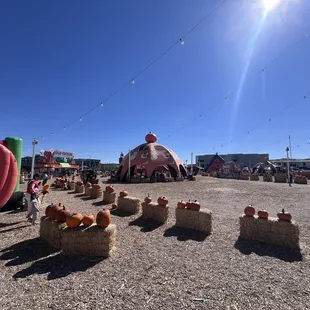 If you've been to the pumpkin patch by IKEA, this is the same one. It's located right behind the Credit One Bank off the 215 West and Cimarron. There's a lots of free parking. Lots of bouncy house types of fun for the little kids like slides and mazes. Socks are required so bring your own or buy when you arrive. There's also a few younger kids rides probably for kids 3+. Lots of pumpkins everywhere you can buy. Lots of photo opportunities also. They also sell food, snacks, and drinks like at fair. The price did go up, $1.50/ticket or $29/20 tickets for the rides. I personally think this is better for kids under 10yrs old. We've been to this pumpkin patch several years now and my son loves it. I would try not to feed your kids anything an hour before and no liquids 15-20min before going in case they get sick lol.