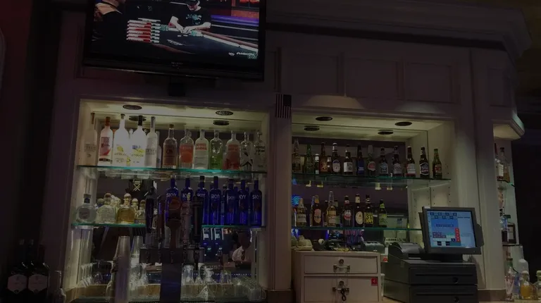 a bar with a television in the background