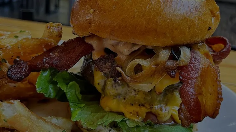 50/50 = I believe it means 50% ground bacon and beef in their patties.Quality/Quantity - The Golden Feast $35 - Expensive, but worth it. My daughter and I were supposed to split this. But my wife and daughter loved it and I am not sure I got my fair share, lol! The bacon on this was like bacon jerky; OMG so amazingly good. I wanted to see if I could buy a pound of this. NO 10lbs of this! The fried pickles was my only complaint, why was it so little? What a tease...Applewood Brie Burger - Wow, my wife is not even a brie person. Another home run for her. The slice of apple took this to the next level. Who comes up with these ideas? They deserve a raise! And with the sweet potato fries! My only suggestion was that I prefer my fries crispier, but I understand it is not easy to do with sweet potatoes.Bacon ketchup! My wife said she will never use regular ketchup again. Why are you not selling bottles of these? You lost a sale. My wife might have bought a case.And of course, to wash it all down, I got a 22oz local Lovelady Love Juice NE Hazy IPA.Atmosphere - Decent size location, cool decor. The sections could be made semi-private.Table, bar seating. Indoor/outdoor seating.Open 7 days a week from 11am to 10pm.Plenty of parking. Service - Good. Charley was very professional, efficient, and friendly. 5 stars!So many good promotions, see website.Price - $70 + generous tip.Owner Comment - Congrats on your success at this franchise location since 2022. And your success since becoming a franchisee since 2017 and with your 2018 location in Silverado Ranch.