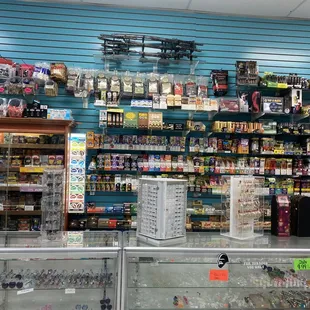 Yeah this place was interesting for sure. The prices were above average. The glass was cheap. The worker was super strange and beyond awkward. They don't take cards unless you spend like 10 bucks which is ridiculous... I mean it is 2016. The shop has a selection of jewelry( very random I know) And you top it off, they also sell porno videos... Why? Idk