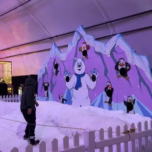 This place is a really cool and neat idea and is great for families! You can build a snowman, ride a train, ride a merry go round in a snow tube, slide down a huge slide in a snow tube, throw snowballs, and even pose with a character! It is a lot smaller than you think it will be but still pretty cool. They have animatronic animals that kind of freaked me out a bit and should be replaced with real reindeer in my mind. Maybe do a "ride the reindeer " for the kids. Also they should add a much bigger family photo spot in the corner. They had a couple photo spots but I saw no one doing it. Also, maybe make an area or something for adults to enjoy while their kids are off playing. Not much for adults to do here. Which I know this attraction is mostly for kids but why not make it even better next year?! Also some of the snow or white stuff on the ground followed me into my car and I didn't even step on the snow in the main snow areas so I thought that was weird.... Also, this is just me as a germaphobe, but the thought of multiple kids in that snow all day makes me gag. Cool to see snow indoors as well and this is TOTALLY a Vegas attraction since Mt Charleston is just around the corner with real snow. Oh and maybe more food and drink choices....Cant wait to see if it's any different next year...