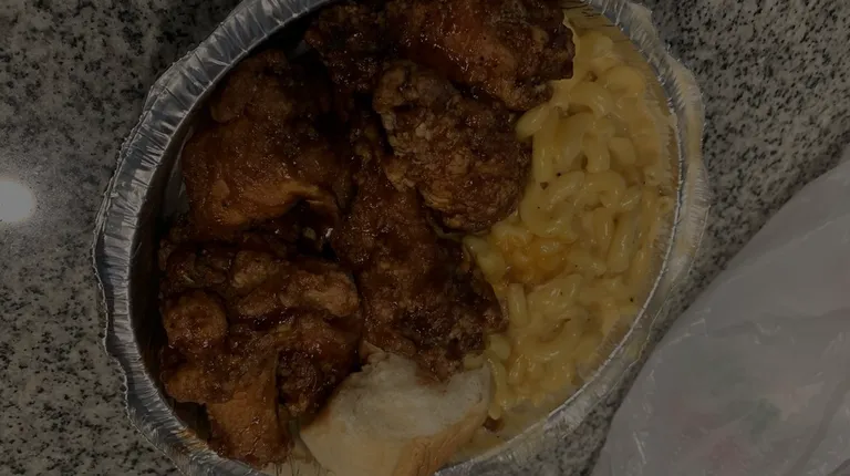My community rented this truck for a Juneteenth event and I was excited to try another local food truck! Let me start by saying, the customer service was great! I ordered the 6pc honey bbq wings with double Mac n cheese because they were out of greens by the time I ordered. I will say, I feel this truck is pricey for the quality of food I received.Wings- I like the fact they're fried in batter and tossed in sauce. It was the perfect amount of sauce for me . I do not like my wings drenched in sauce. The quality of the wings could be improved but overall, I was satisfied with them.Mac n cheese- not a fan . I like more of a casserole Mac n cheese. Lacked flavor.Wait time- I ordered my food about 1:15 & it was done around 2pm . It was a line & private event so I get there was going to be a wait. I appreciate the fact my food was served really hot.Overall, this truck has potential & I wish them well .