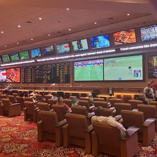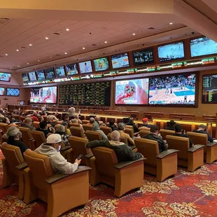 One of the better sports books in LV. I believe this is the only book in LV that is open 24/7, which nakes it convenient to wager when you're in a hurry. The only reason I'm not giving five stars is because they no longer give drink coupons for placing bets. I've never been to a book in LV that doesn't give you drink coupons. You can place a $1000 wager and you ain't getting anything. Pros: Hot Dog cart located next to the seating area Comfortable seating with a spacious lounge Deli conveniently located in the book24/7 Starbucks nearby Plenty of monitors Betting sheets always stocked