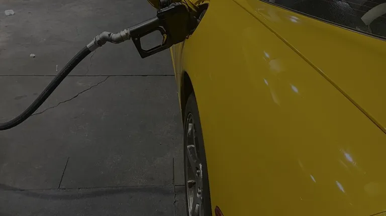 a yellow car at a gas station