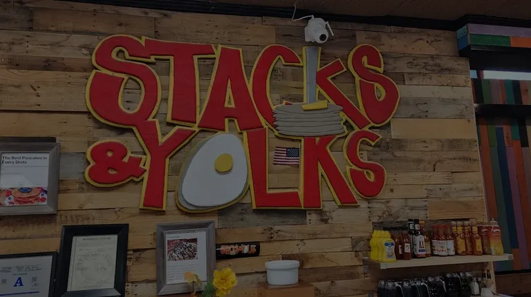 I'm not quite sure why the reviews are so awful for Stacks & Yolks. But I am glad they didn't keep me from giving them a try.For a Sunday morning at 10am, we had no wait and there was decent table availability. I wasn't impressed with the exterior of the location, but they do have a lot of parking. The inside was cozy with fun decor.Service was so quick. We were immediately sat, regularly checked up on, and never had less than half a cup of coffee. They were super nice and personable while constantly topping off my coffee.The prices were a little high for what they offer. But I was pleased to see the option to make your french toast, waffle, or pancake into a combo with eggs and meat. The pancakes are also super customizable, and you can get really creative between batter and topping options. I enjoyed my November pancake with over-medium eggs and sausage.My husband's chicken tender burrito was delicious, and the fries yummy, but $20 is a lot for the size.I'd come back.