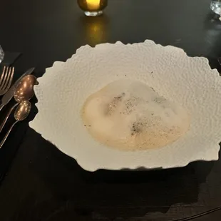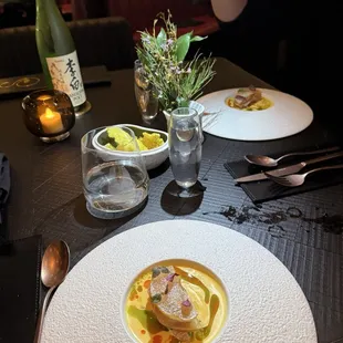 My bf booked their pre fix dinner for our valentines dinner. We went the day prior to Valentines day. Reservation was at 730, wasn't busy when we arrived or sat down. We know they just opened the Monday prior, & didn't have the highest of hopes but definetly excited to finally try the long anticipated newest addition to the Las Vegas restaurant scene. Michelin star chef at that! I will say service the entire night was spot on, the main server was great but the busser was SPOT ON! First few bites were great, and quite honestly a lot of it was great! Few things tasted sub par but overall Tasted well, on beautiful plateware! Each course Came out at a good pace too! Never felt rushed or felt we waited too long for the next course which was nice. Besides the small bites, we cleared two of our plates out of the whole tasting menu. Their steak, & pasta dish. It was a good dinner, not great nor exceptional. This was their 3rd day of opening & so we understand the kinks. Like once they came back to the table to ensure we got a certain course, the messenger went back to the kitchen angrily. Which was a little awkward but again understandable. The chef kept coming out to one particular table behind us who seemed to possibly be "foodie influencers" with their big light, etc. He dropped off food, explained the dishes multiple times to them after over hearing they've dined their prior. Obviously we didn't expect him to stop by although we wish he did scout the front of house a little more (I know he's busy, I'm not trying to be irational) I'm just saying if you're giving attention to ONE table you're already out here even if you didn't check on our table it would've been nice to see him interact with the other tables in the front especially after just opening! Overall it was good, not exceptional! If we didn't know prior about his Miami location having a Michelin star we would've never guessed! Giving it 3 stars because for a $600 dinner, I rated it amongst the other places we pay the same amount for on the strip & it was a little underwhelming compared to the usual places we spend that much on. Glad we got to go! Probably wouldn't be back- but I encourage everyone to try it!