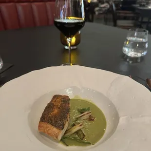 Valentine's Day dinner and was excited to check out this new Michelin restaurant. Made our reservation and checked in early but was surprised to be seated in the bar area especially for the more expensive tasting menu and was hoping to at least have a view of the beautiful mural and Chef Jeremy and staff at work in the main dining room. We wouldn't have minded if the hostess explained to us that it was a very busy night and we had an option of sitting immediately at the bar area or waiting a little bit for an open table in the main dining room. If we were there just for cocktails and an appetizer, then yes we were seated in the perfect area. Luckily, our server Shauna (from Oahu) more than made up for it. We opted for the wine pairing and I was surprised once again there was no sommelier to pour our pairings especially since we were seated next to their glass wine cellar, but I'm just comparing this to my past experiences with wine pairings and tasting menus. Shauna did an excellent job keeping up with the courses and pairings and deserves a lot of credit for making this a decent experience. The food overall was excellent and that Michelin star for the food is well deserved. My favorite dishes were the Barramundi and the Wagyu and I was very happy with their portions. It was a very busy night so I don't think we were able to experience the full hospitality and service that is usually associated with a Michelin star, but it's obvious they do have a high set of standards and quality control and would like to revisit at a less busy night and update my review. It's closer to a yelp 5 stars than 4 stars and this specific visit was more like a 4.5. The food and flavors were amazing, but it's where we were seated and the lack of a sommelier pouring our wine pairing that specific busy Valentine's night that made me not give it that full 5 stars. It just recently opened and there's obviously some growing pains on the frontline, but the back of the house were serving some amazing dishes and I'm excited to try their future menus.