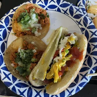 LA Dogs: bacon wrapped hotdogs with freshly cut veggies.