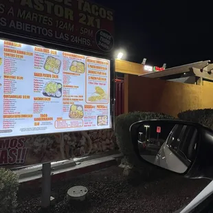 Food was great but they cheat you on the prices I ordered 2 Dinners 10.99 2 sodas charged me 41.00 . When I got home i looked at the receipt and he had down 6 more tacos which I didn't get. They dont understand English very well at all . If they have a drive through they need someone who can speak and understand English better then this guy. Pissed me off so be careful before you drive away and look at the receipt. But food was delicious.