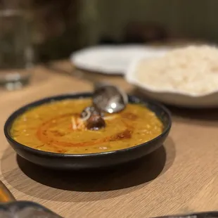 Decided to try this on a whim and made a last minute reservation for Town Square. Tamba has been an upcoming place and we finally decided to try it. The ambiance is very dimly lit and did not appreciate the darkness. But it is definitely an elevated experience of Asian and Indian fusion. Drinks: 1. XO Colada: Super thick and super strong. The thickness was a bit too much. 2. Crowne Lassi: this one was much lighter and super refreshing. Super cool take on the mango lassi with a nice nutty touch. Main Entree: 1. Butter Chicken: Creamy but balanced with a little bit of spice. I loved the bites of chicken that were tender and delish! 2. Dal Tadka: a lentil dish that is nice and creamy but very light. This dish has a really nice kick to it as well. Sides:1. Garlic and Cilantro Nann: I loved the garlic flavor that was definitely strong. I loved that it was raw with still a mild taste2. Goat Cheese Nann: the goat cheese was beautifully paired. I loved how it was perfectly balanced. 3. Truffle Nann: The truffle wasn't very strong unfortunately. I wouldn't reorder 4. Plain Nann: Plain had a light brushing of oil or butter and its perfect to pair the curries 5. Trio of Chutney: Cilantro, Mango, Tamarind-Cilantro: I loved the herby flavor that was nice and strong -Mango: nice balance between a savory and sweetness-Tamarind: way too sweet for my tastebuds Dessert: Crunch: I cannot remember the name but it has a coconut and passion fruit portion with pistachio. This dessert was a bit heavy unfortunately and didn't really mesh. Overall it was a great opportunity. However with the price to service, I think it a bit of a miss. Out of the 1.5 hrs of service we had our water empty three times and asked 2/3 times unfortunately. So I just wish the price matched the experience a bit more.