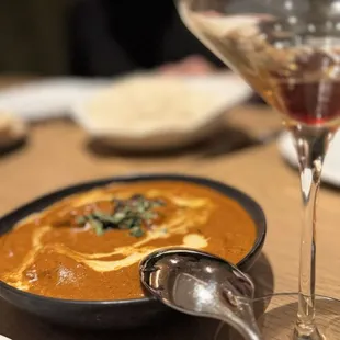 Not a traditional Indian restaurant by any means but they hit it out of the park as a contemporary fusion. Very aesthetic restaurant with attentive service and, most importantly, amazing food. - Sushi temari: Quality fish and tasted great. Nothing against it, but there's so many excellent sushi spots in town that I'd skip this next time because all the other flavors were so much more unique- Butter chicken: Stayed close to its roots, one of the best I've had. They have several choices of naan to accompany it; we went for garlic naan and you can't go wrong with it- Bhuna gobi: The most impressive dish for me somehow ended up being this vegetarian one. The fusion of flavors in the sauces was legendary, and it was the most aesthetically presented dish as well- Tawa charred octopus: Excellent texture, and once again, the flavor of the sauces was phenomenal Their drink menu is extensive. Everything we ordered was great, but their Crown Lassi in particular went straight to my drinks HOF.The menu is designed for sharing, and I'd recommend 2-3 items per person depending on how much you can eat/want to eat, and the appetizer vs entree distribution. One of the most memorable restaurants I've tried in a while. Highly recommended.