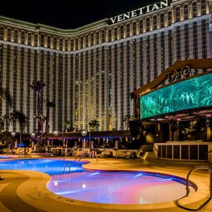 Partying during the daytime?! Sign me up!! ;) I've always heard about the famous TAO Beach Dayclub and had to check it out. It was an awesome experience. I highly recommend working with a promoter. We were able to get on the guest list to bypass the line and get free drinks :) We were there on a Friday in October which was nice because it was still sunny and warm but it wasn't too crowded. There was plenty of space in the pool and around the edges to sit down with your drinks. The pool boys were very friendly and helpful. There was always enough clean towels to grab. The bathroom was heavenly!! Clean, spacious, NO WAIT, and air conditioned inside. The DJ was playing a good mix of vibing music which kept everyone dancing and having a good time. I would definitely return the next time we're in Vegas!