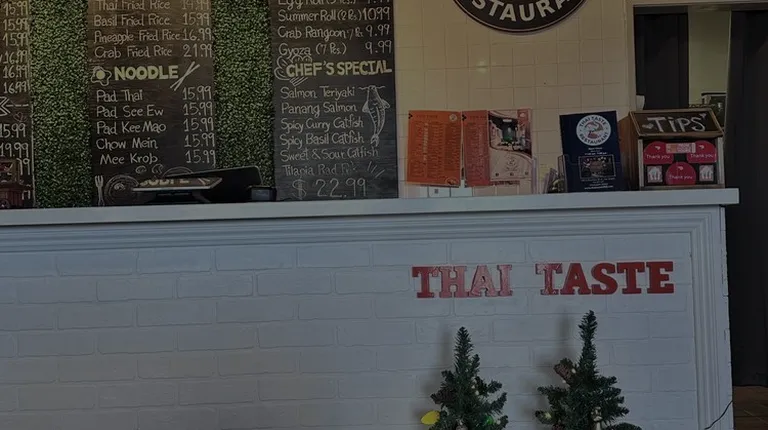 Trying to find good food options open on Christmas, since our original Christmas plans were cancelled last minute, we found Thai Taste was open. I have been here before and knew that their food was good so it was a no brainer when we decided to get Christmas lunch to go. Their food is fresh, flavorful and delicious. We called in our order around 12ish and within 29 mins I was heading home with delicious smelling Thai food. We got their chicken satay, pad Thai, orange chicken and yellow curry. The satay was cooked perfectly and the peanut dipping sauce was rich and creamy. The cucumber salad that was on the side was a little bright freshness against the more rich sauce. The yellow curry had a little heat to it which I loved. It was delicious and didn't weigh you down. The pad Thai was perfectly done. It had great flavor and the orange chicken had a great crunch to it. The batter wasn't too heavy and the flavors were really good. We also got their Thai tea and their Thai iced coffee both were great and refreshing. The people who work here are also super friendly and seem proud of what they serve. It's just a great local spot that is perfect for grabbing a quick lunch or getting a holiday meal.