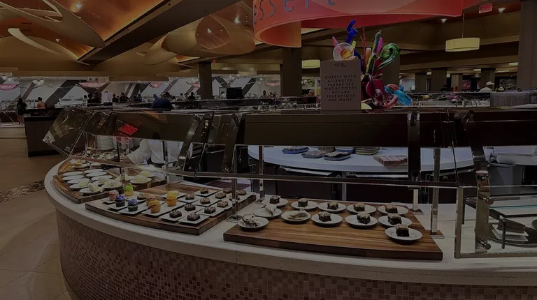 We always eat at the Excalibur Buffet. When we come into Vegas. Just like any buffet you will find something you love and something you don't but the cost of eating at fast food comes to the same price when you use. A buy one get one free or Resort Credit they give when staying at the Excalibur. Sign up for MGM rewards! The staff is amazing. Our server was on top of clearing the dishes from our table and she was very personable. Since our last visit they did change the weekend brunch now it's slightly higher but includes unlimited mimosas. Many different items to choose from. My favorite was the Smoked Brisket located at the carving station. Do yourself a favor and get the Horseradish sauce and Chipotle BBQ mix together and top your brisket. Thank me later. So delicious. Also kid friendly and kids under 5 eat free.