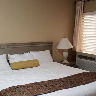 The bed had dirty sheets, like they didn't change them after the last people checked out so I called the front desk and ask them to change the sheets. When I came back from dinner, they had dropped off sheets but didn't change the bed. I had to change the sheets myself, only to find they didn't bother to send clean pillowcases. I had to call again and asked for pillowcases. They sent two pillowcases when there are four pillows on the bed. They had to go back and get two more pillowcases. Also, they charge a $34 facilities fee but the elevator was broken and the ice machine didn't work. Not sure what the fee is supposed to cover.
