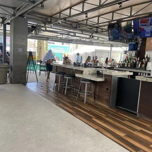 We stayed at Planet Hollywood over looking the pool area .The pool was such a vibe ! They have dj music on the weekends . There is two pools one all ages and also an adult pool . They also have a surf area that looks pretty cool .So in the adult pool when there is no DJ, they are always playing loud music by the pool. I love it !! I love music and it feels like a party when swimming. Sooo Vegas ! They have a bar by the adult pool and also in the middle of the patio area . If you go inside the bar area there is a-lot of foosball games and the restroom are located near there also . At the bar everyone was so friendly and attentive. Overall this was a fun Vegas pool we had a great time !