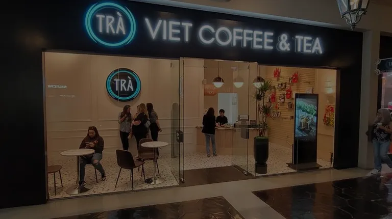 If you are craving some Vietnamese coffee, and/or need a little boost of caffeine while doing some retail therapy at the Grand Canal Shoppes, Tra is a good place to stop. Ordering is done at the kiosks, and the staff make/seal your coffee. There is minimal interaction, at least from what I saw at my visit. Cups are cute, and different from what I've seen at other boba/coffee shops. Volume was deceptively light, or maybe because I drank quickly, but it felt/looked like my cup of Hanoi coffee was mostly ice. Kind of pricy for some coffee, but when in Vegas? :)
