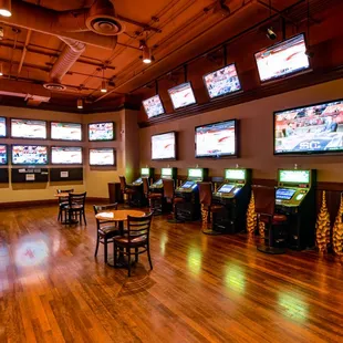 An off-shoot of and part of Station Casinos, you get Station perks and promos here. On a much smaller scale. This location has a bar, sports book, restaurant and casino style floor with a fair variety of games. There is also a cocktail server. The bar has quite a few machines, and sits elevated from the casino floor. The slots on the floor include mostly penny style slots, with a smattering of video poker. There's a huge patio adjacent to the dining room which appeared unused. I was here mostly for the weekly promotional gift, which is earned through points. They had a table by the cage to distribute the gifts, and after earning my points, it was easy breezy to claim the gifts. Lucky me, I had money left too! When it was time to cash out, the one machine I saw was flashing red, so no go. They have a cage, which I guess is periodically staffed. No one was there, and an employee working the promotions table told me to cash out with the bartender. The bartender pointed out the 2 cashout machines, and I told her the one I saw was flashing red. I looked at the other one- also flashing red. So she cashed my ticket. There's plenty of parking, which is definitely a plus. I noticed a sign at the promotions table for a free players dinner (Gold level and above). I was told that anyone could attend, per availability, by earning 50 points the day of. That is a nice perk for players. If you want to escape the hassles of big box Station casinos, Wildfire may be for you.