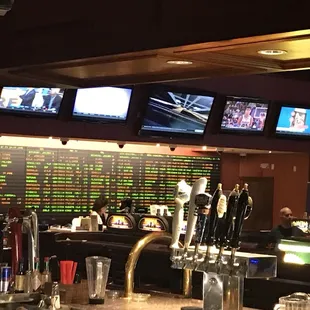 Iy seems that they are like other cafes in the stations cafe situation. A server was out, not feeling good and the 1 server left was overwhelmed. Seems that they dont care about the customers as they can wait in line for everything. Let them wait. They will be waited on later. No extra help. Food was ok. Gambling was a bust.