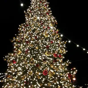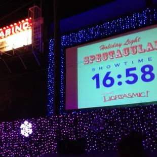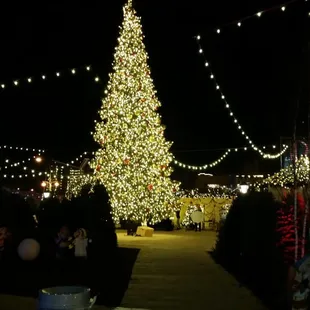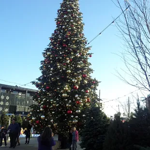 Huge beautiful Christmas tree! Huge seating area for kids and parents to watch jumbotron, a cute elf cartoon.