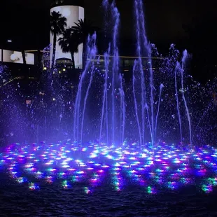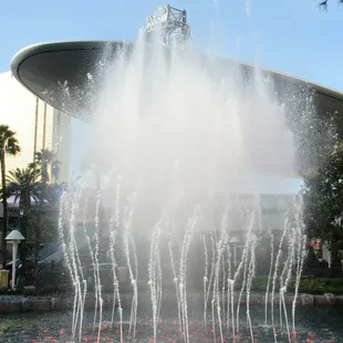 This fountain show is not as extravagant as the Bellagio fountains, but the musical sounds that are connected to it give it the old Vegas touch.Whenever I walk past here I am transported back to the days of Frank Sinatra and Dean Martin. That old world suit style and of big bands. The Wynn is an extraordinary Casino and Hotel anyways. So with the fountains dancing to the smooth sounds of the past it brings back a piece of the past, that is getting lost to so much change in Vegas.The neon lighting that is used it best seen at night. I love the uses of vibrant fire oranges and neon lime greens that move so elegantly. The water shoots up when it's at its height. If one happens to see it on a trickle, it will grow in size. Then absolutely achieve it's brilliance and then do it all over again. I am not sure on the frequency of this fountain, but the oldies are nice to the ear every time I walk by. You get old blue eyes tunes in your head and your humming them all day.When we walk by the twins always here the voice of Frank Sinatra Jr from Family Guy, they immediately act out those old scenes; as seen in the cartoon . Come on Family Guy Fans who has not done this and sang along with the tunes here by the fountain. Or at least with enough libations to make you sing in public.I love making new memories every time I walk past the fountain, since it is different all the time. Unlike the Bellagio fountains they are constant and stay the same. This fountain show changes it up at least with the colorings. Plus the music is better than the Bellagio Fountains Show!
