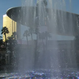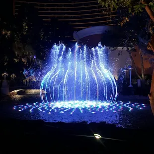 Maybe water fountains are like people...Some are constant, even keeled and stable while others are bold and dramatic at times. Both have their own good qualities!If you compared this Fountain Show at the Wynn Hotel to the show at the Bellagio Hotel, you might say that this one at the Wynn Hotel in Las Vegas is simpler and still beautiful - especially at night when the colors and patterns of the water stand out more.We were mesmerized and took many photos. The music, combined with the soft sounds of the streams of water falling into the pool, was a calming and happy experience! It's worth taking a look when you're wandering this fabulous hotel!