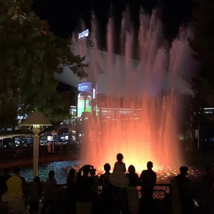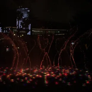 A waterfall and fountain show.