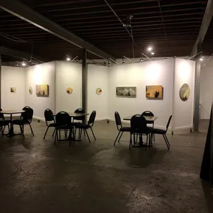 Such a beautiful space. It is small and intimate. Good for receptions, art shows, or whatever you think you can use the space. You can have many things there and it can be set up however you want. I was there for a play and it was set up so nicely. With chairs, I think I can hold about 70 chairs maybe a little more. I've been there for another event but there were no chairs. It's a very beautiful and nice space.If I needed a place for an event, I would try this place. Very community oriented and in an great area. Parking is only on the street but seems to be a long street.